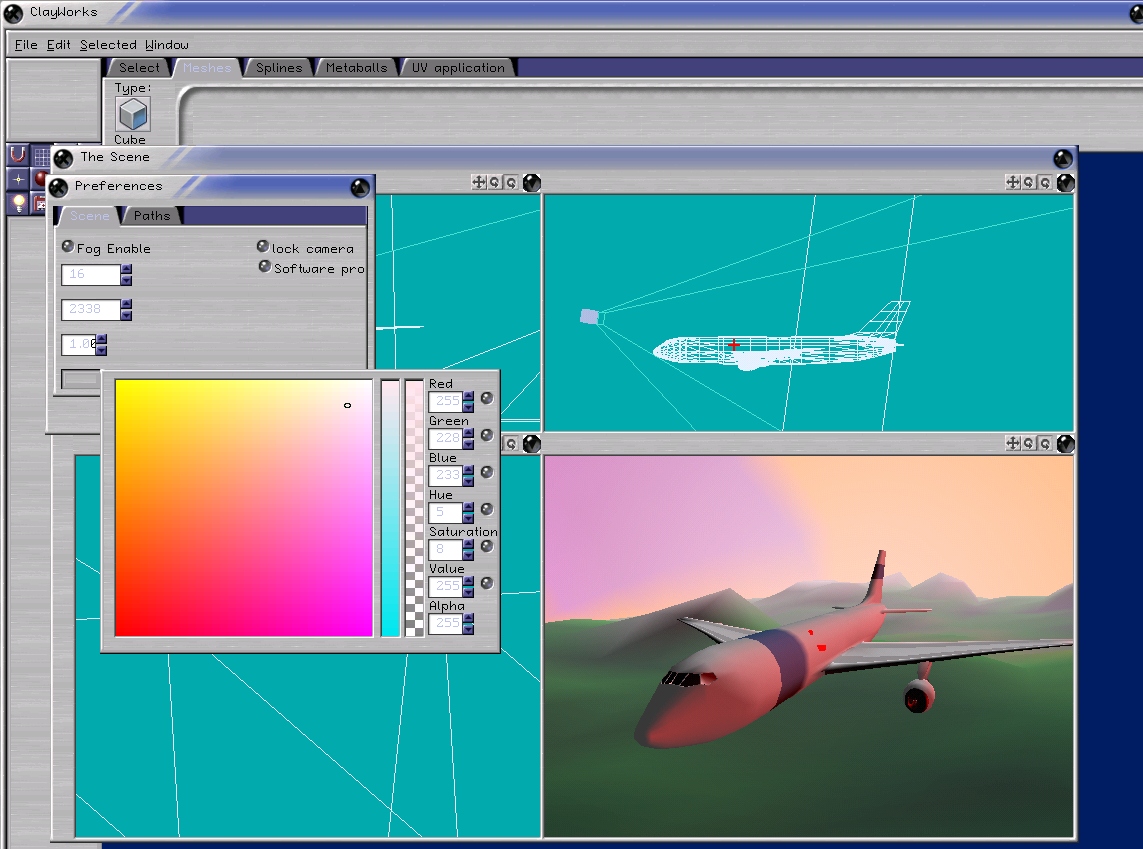 Thanks to a suggestion by Andy Coleburn of AC3D fame, I think I've found a way to get this program working on just about anything with a decent opengl driver. As clayworks is not tied to the user interface of any particular system (I wrote it myself folks, knew it would pay off someday) I believe it is very possible to use opengl for the interface as well as the 3d stuff; initial tests are promising. This means that clayworks will be ultra portable and hopefully users of Macs, linux, windows, windows NT, SGI and perhaps even amiga owners with a fast enough box will be able to enjoy Clayworks. Watch this space, as soon as I have something working, I'll let you know.