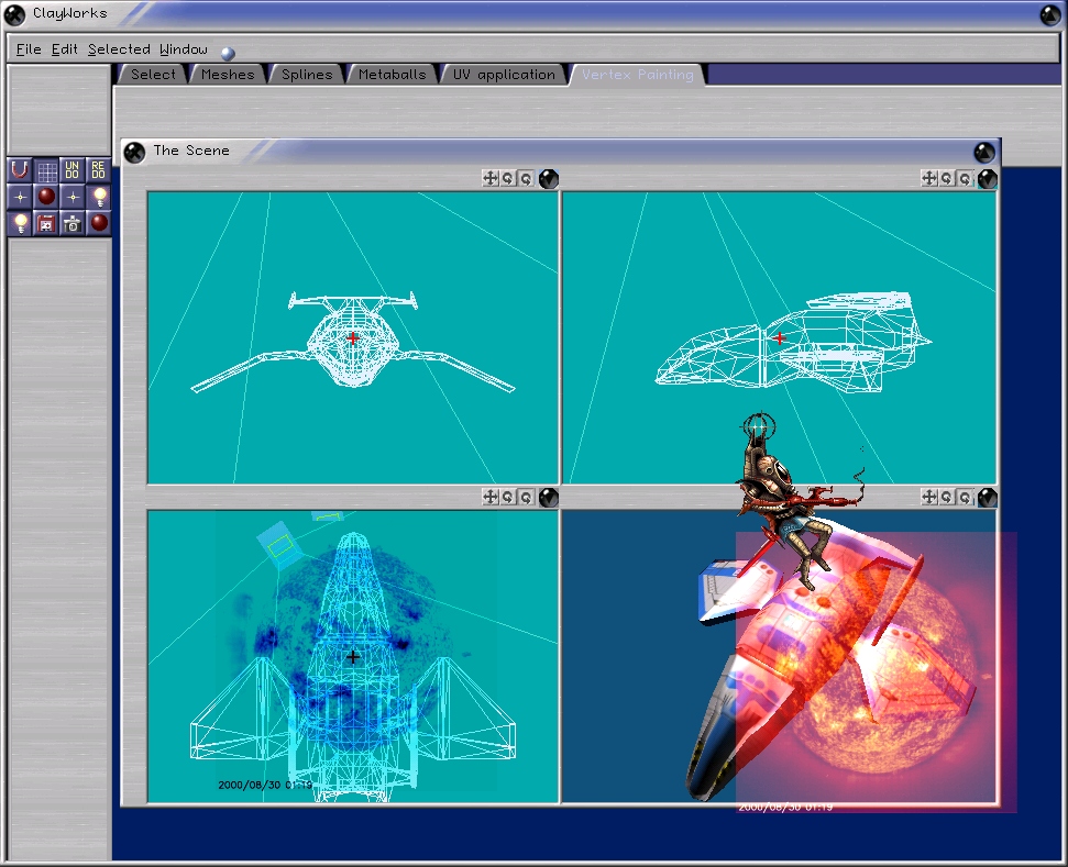 Well, I promised quite a few people that I'd have the beta released before Christmas but alas, Christmas itself intervened and I haven't been able to adhere to my self imposed deadlines. For those who are waiting, I can't really express how unhappy I am with such a slip as I've been so keen to get everything done by the end of 2001 as it's been so many years since I started this overwhelming project. However, I'm still working on it and I hope to overcome some final coding hurdles soon so that I can get the beta out as soon as possible. Despite the delays, things really are coming together. ClayWorks isn't vapour-ware, it never has been. It's just the product of a bloody minded perfectionist who wants to create the perfect 3d modelling program. Whilst such a goal is arrogant and unobtainable, it's important to aim high. For those who are both technically minded and interested, I'm currently implementing the channel-based mesh modifier code which will allow for infinite undo functionality and procedural animation in everything from moving a single vertex around through mesh skinning, per vertex colour animation, uv manipulation and a whole lot more without some of jarring limitations and user interface foibles found in more expensive contemporary software such as 3dsmax (fine though that software is).